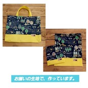 おそろいの生地でレッスンバッグや巾着を作っています。