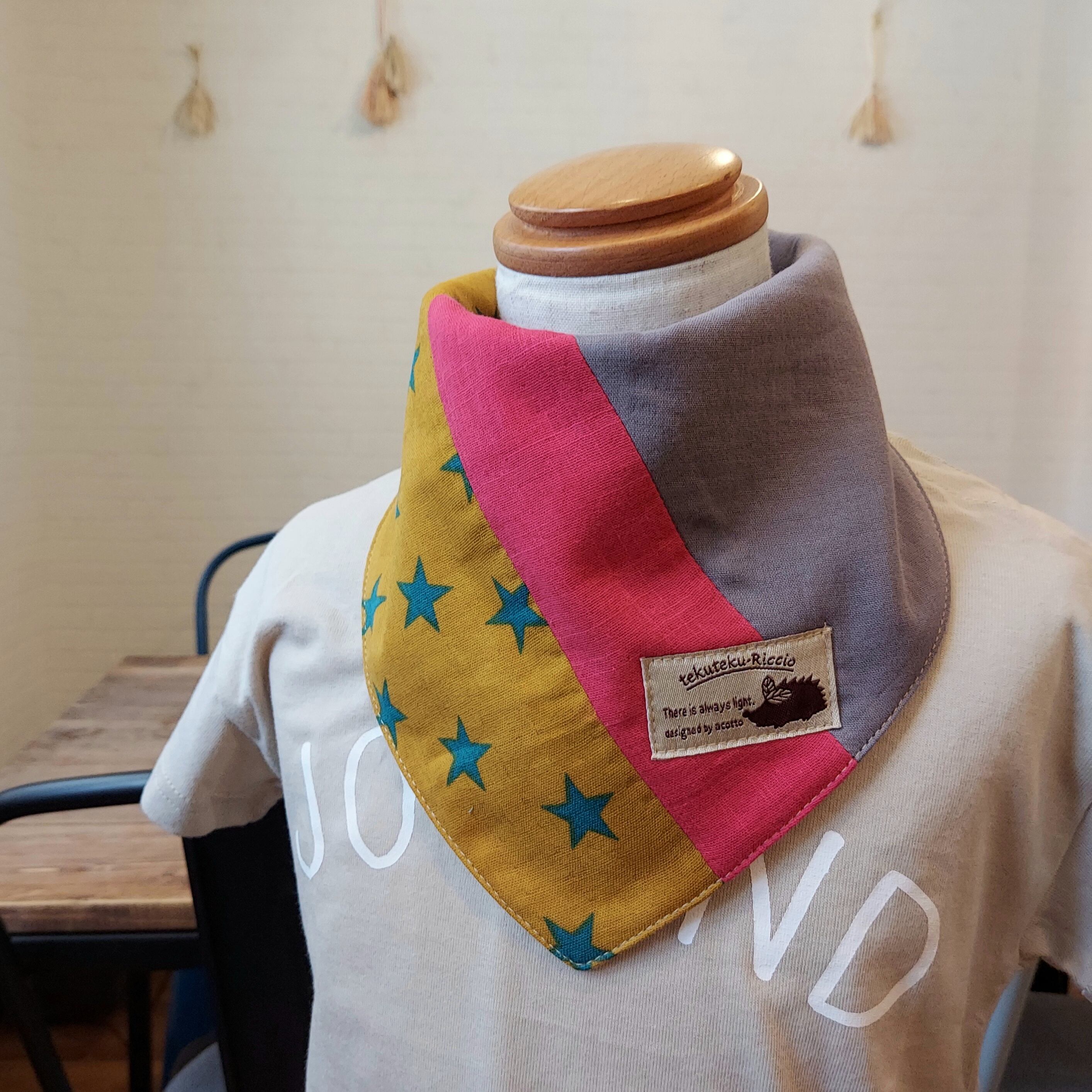 星柄マスタード × ピンク × ライトグレーの3ブロックです。